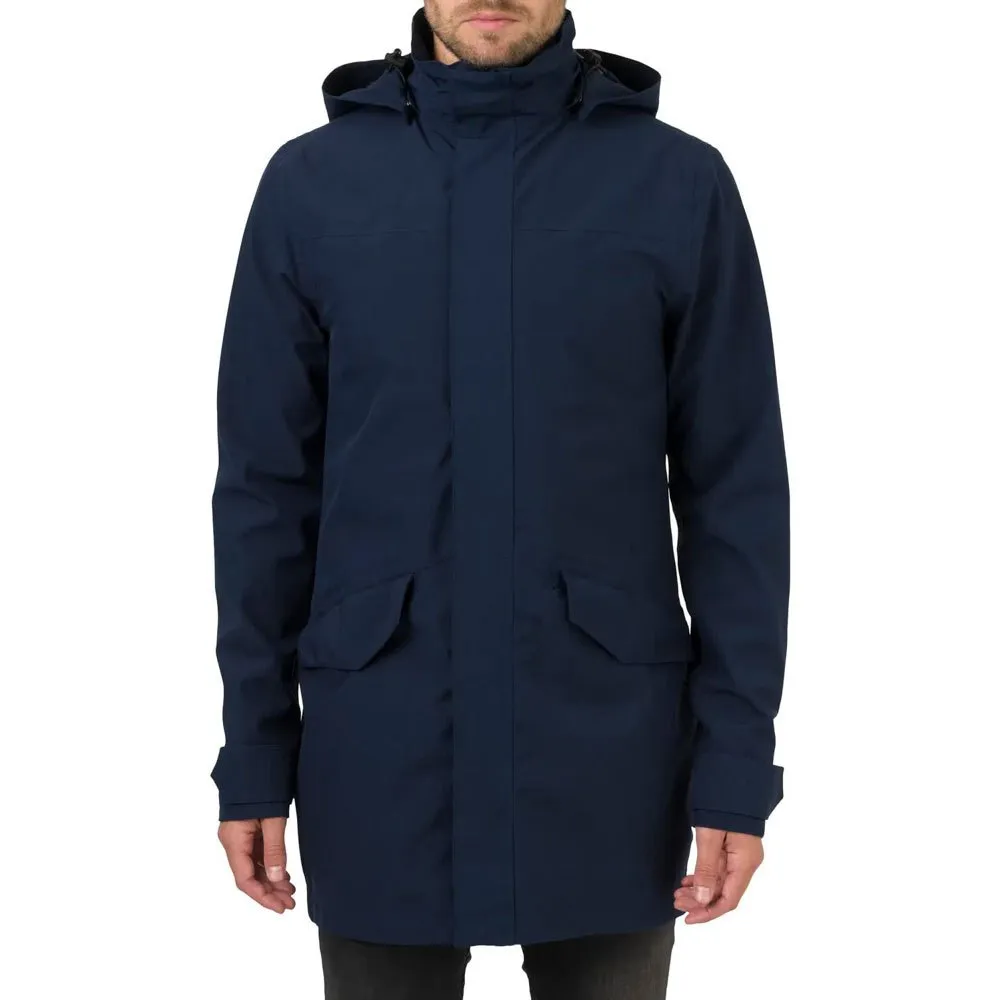 A key feature of this Parka is its length, which also protects your legs thoroughly. The pockets with flaps give this parka a classic touch and also keep the rain out. The Poray 5000 coating ensures breathability and also protects you from wind and weather. The two-way zipper at the front and the long split at the back provide extra room for movement during your bike ride.