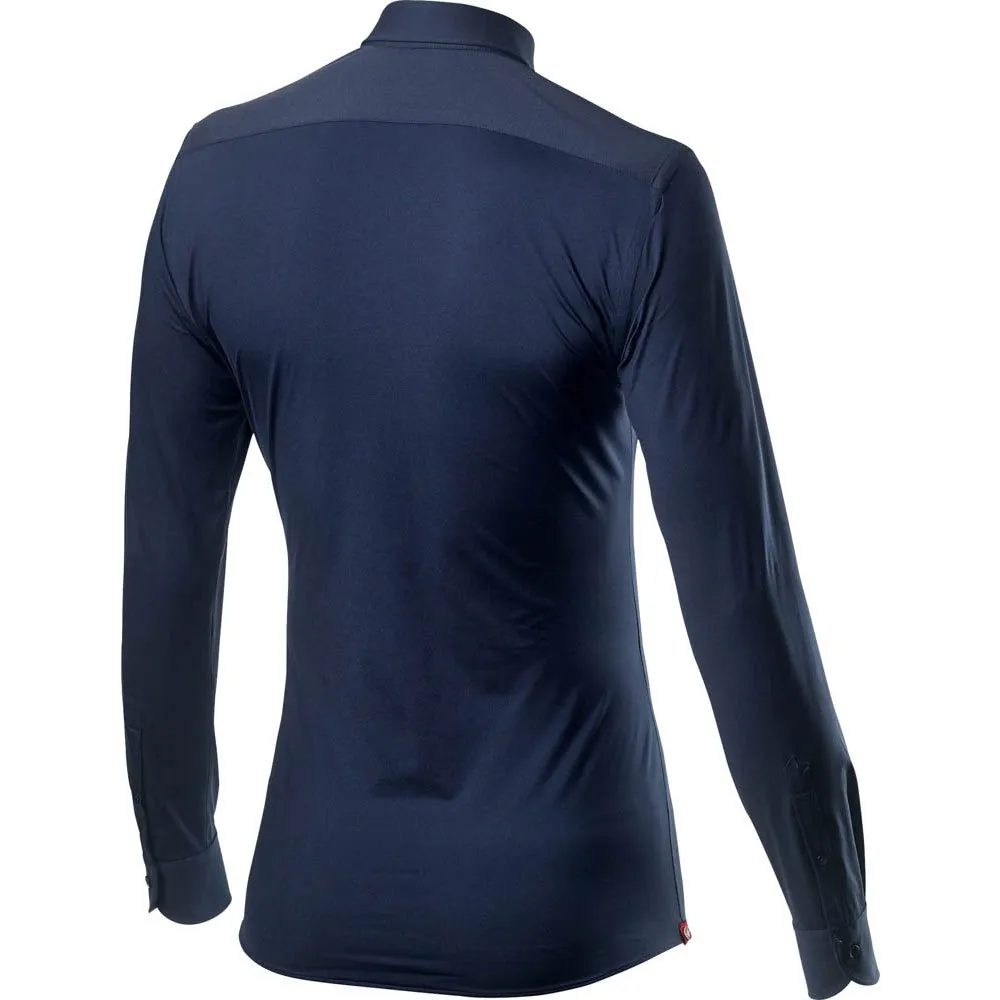 Castelli x Xacus, a collab with one of Italy´s premier shirtmakersStretch nylon/Lycra® fabric feels unrestricting and cool while looking classicSlim fitFrench collarMatte buttons with contrast stitching on top buttonDiscreet small TPR logoWoven VG A.
